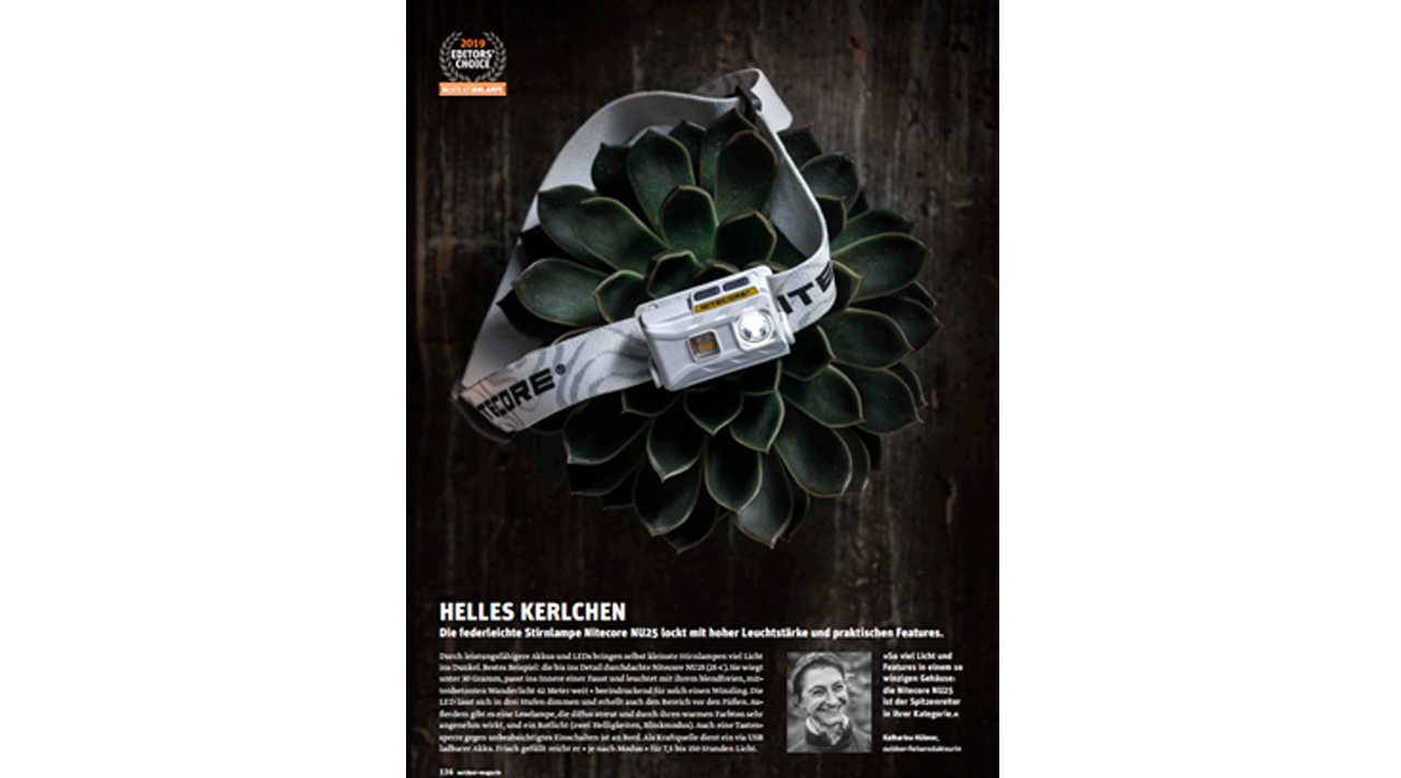 NITECORE NU25 Selected as 2019 Editors’ Choice of German outdoor Magazine
